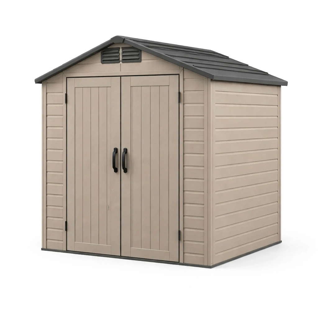 Capanno in resina con doppia porta beige e marrone