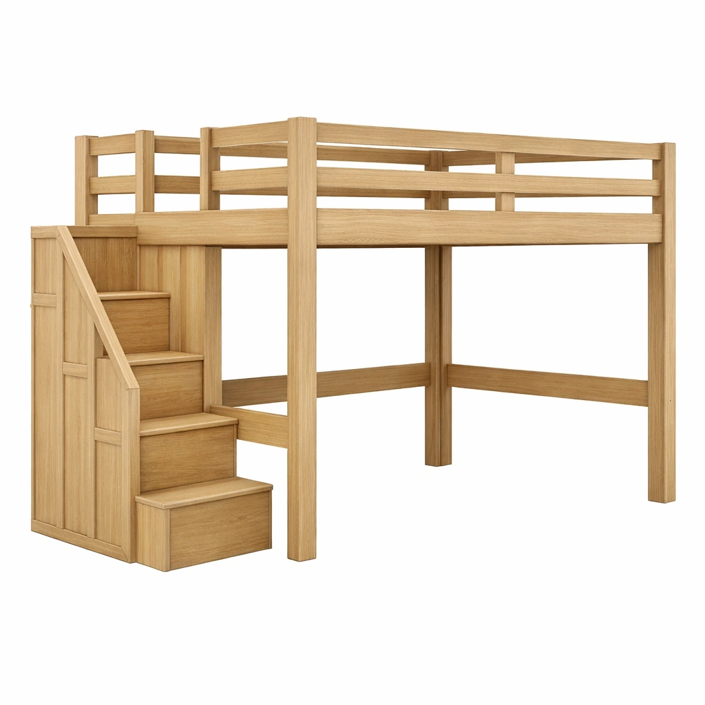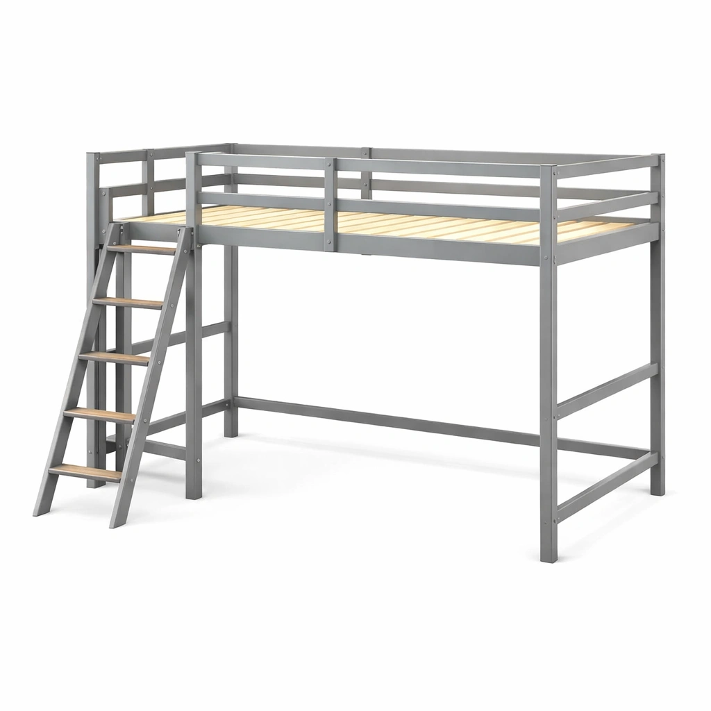 Letto a soppalco in legno di pino e mdf bianco con scala
