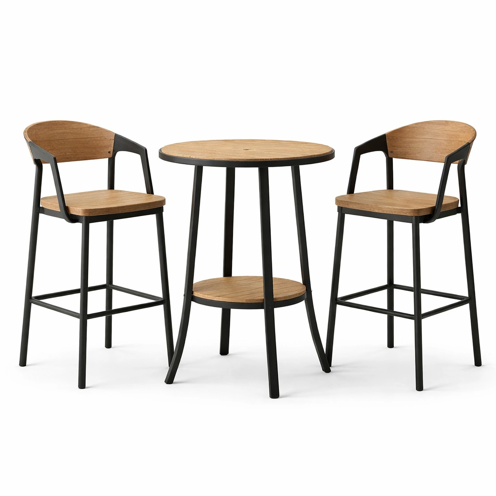 Componenti inclusi: Tavolo rotondo, 2 sgabelli.